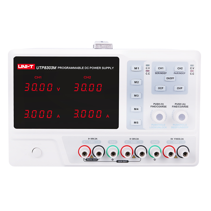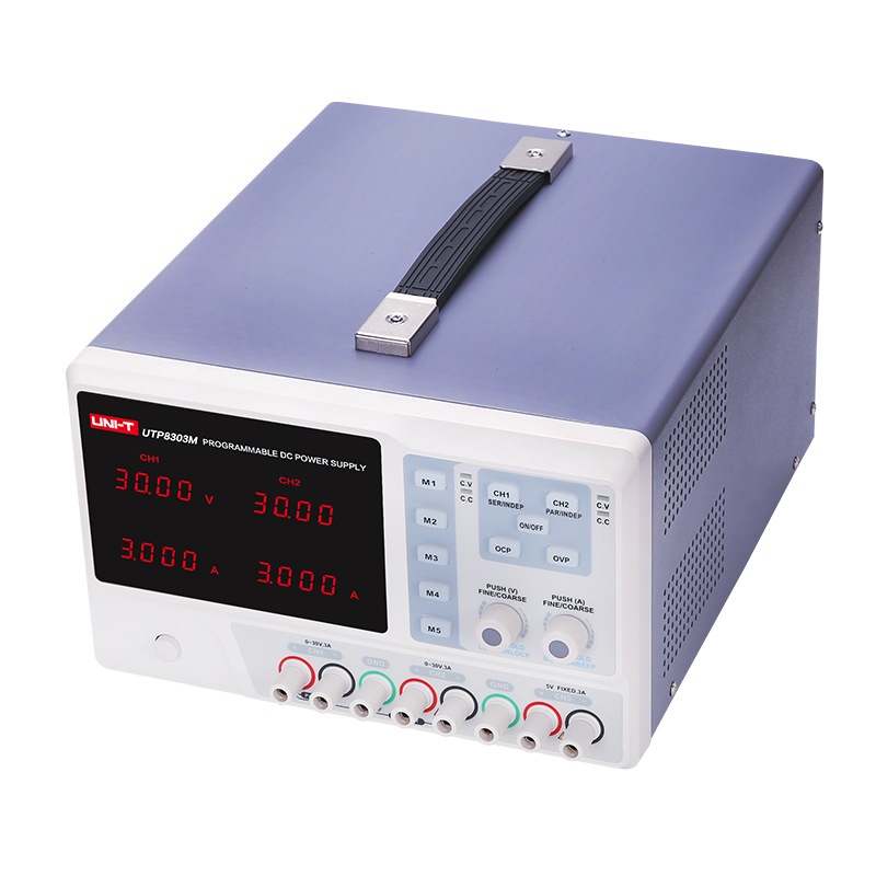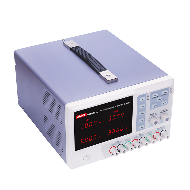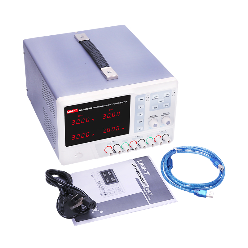 UTP8000M是一款高性能的具有單路輸出的程控線性直流電源。它擁有純凈輸出,優異的性能指標,豐富的接口,可滿足多樣化的測試需求。四位電壓及電流高精度顯示,可設置過壓及過流保護,過溫保護,5組一鍵調用存儲值,關機記憶,軟件校準鍵盤鎖定,USB,RS232通訊接口。