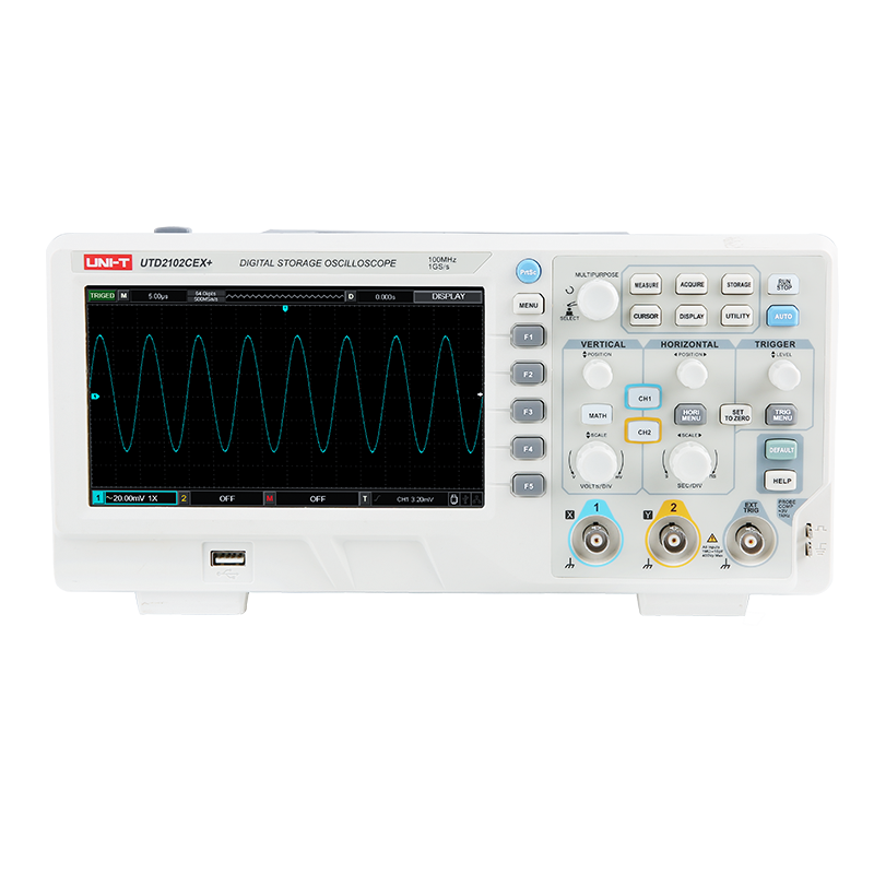 為方便用戶操作,UTD2000CEX+系列新增旋鈕按下一鍵居中功能,找不到觸發點?沒關系,一鍵居中。波形太高不好看?沒關系,一鍵居中。另外UTD2000CEX+系列垂直控制區旋鈕按下新增一鍵切換粗調/細調。水平控制區旋鈕按下新增一鍵視窗拓展功能。