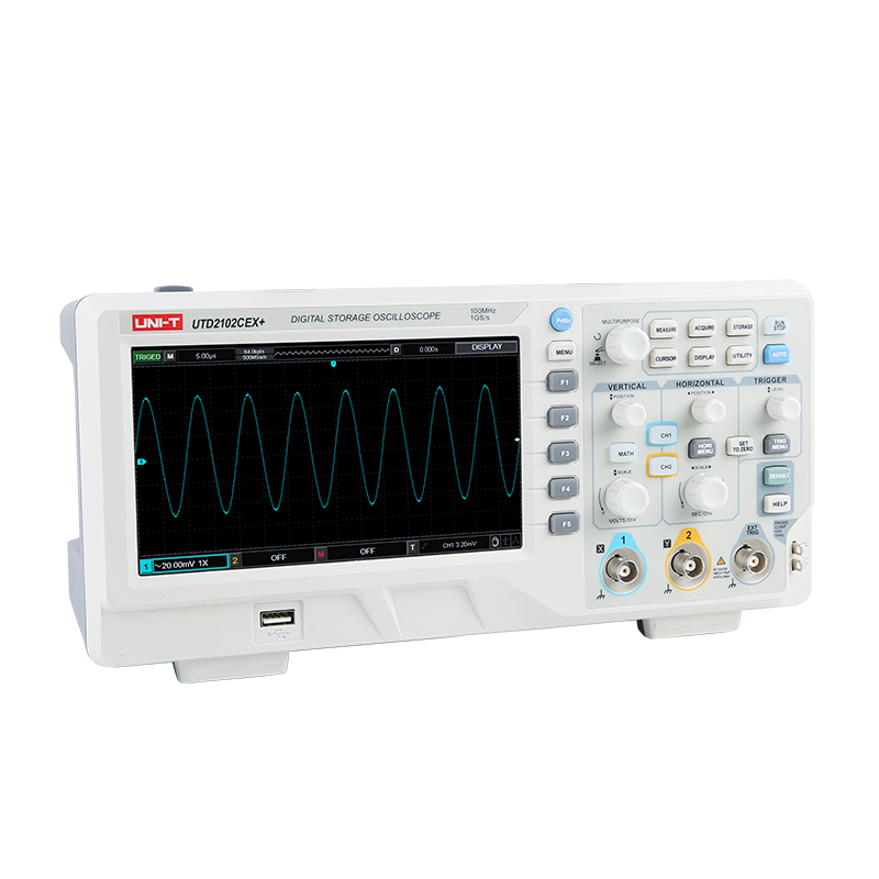 采樣速率也叫采樣率。優利德秉承一貫傳統,將采樣率計算方式進行重新聲明。在非交織模式下每通道采樣率高達1Gs/s。根據奈奎斯特定律,示波器的采樣速率越快,所顯示的波形的分辨率和清晰度就越高,重要信息和事件丟失的概率就越小。UTD2000CEX+系列示波器提供非交織模式下每通道高達1GS/s采樣率,可以讓您以最經濟的方式得到最真實的信號保真度,更強的偶發信號抓取能力。