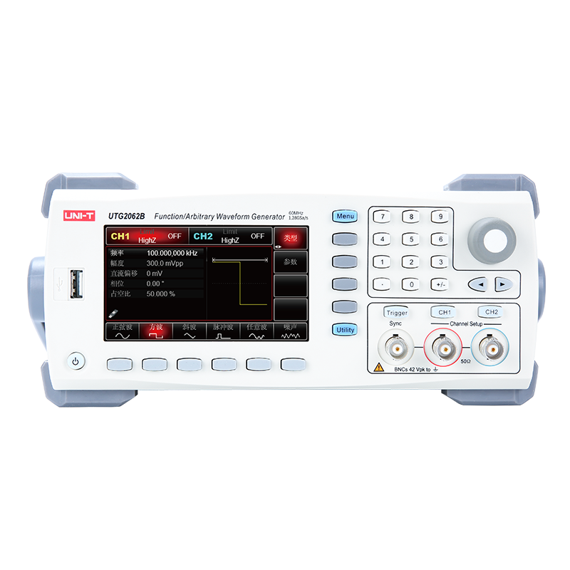 雙通道有多種基本波形可選擇:正弦波、方波、斜波、脈沖波、諧波、噪聲、直流、表達式、任意波形