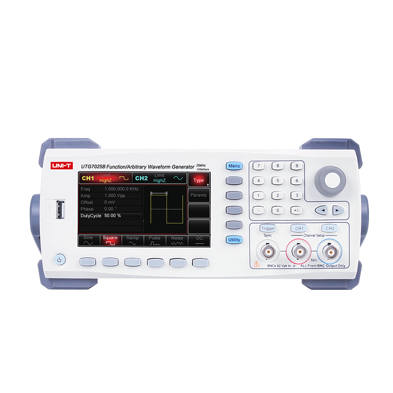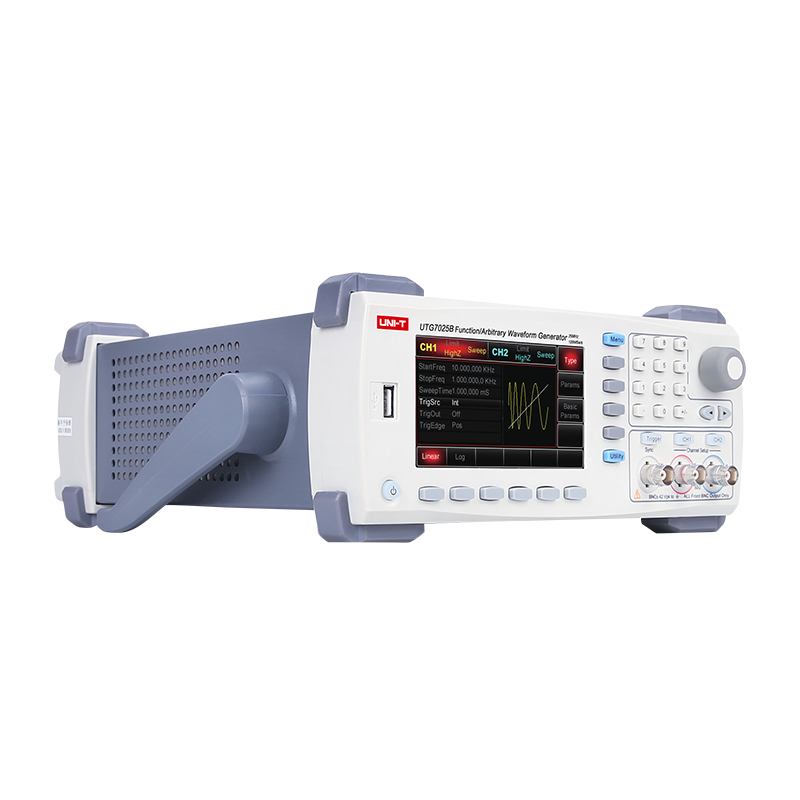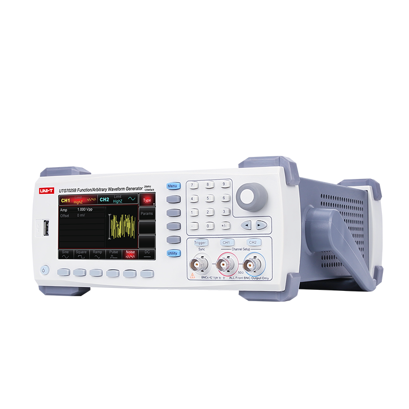 UTG7025B系列雙通道函數/任意波形發生器,最大輸出頻率25MHz,125MSa/s采樣率,14bits垂直分辨率。等性能雙通道獨立輸出,具備調制、掃頻、Burst、等多種復雜波形的產生功能。標配USB Host、USB Device接口,便捷高效的操作界面、優越的技術指標及人性化的圖形顯示。