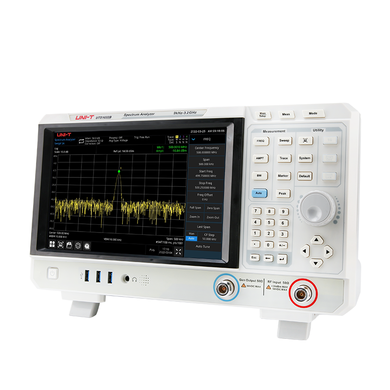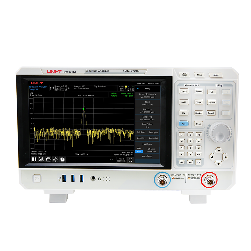 微弱信號的測試容易受到頻譜儀本身的本底噪聲影響。UTS1000B 系列顯示平均噪聲電平低于-161dBm,有效的保證了對微小信號的測量能力。