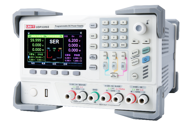 采用4.3英寸高清顯示屏,為用戶提供了功能豐富,操作簡單的人機(jī)交互界面,可以實(shí)時顯示電源當(dāng)前的設(shè)定輸出電壓/電流、實(shí)際輸出電壓/電流和保護(hù)輸出電壓/電流值,同時各功能交互界面簡單全面,易于操作。