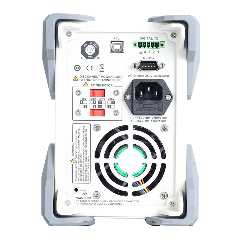后面板RS-232接口、USB Device口,基于SCPI通訊指令,可與計算機進行通訊。