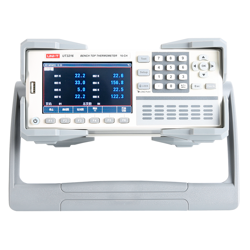 UT3200系列多路溫度測試儀包含4款型號分別為UT3208, UT3216, UT3224和UT3232, 其區別在于四款型號分別對應8、16、24和32路熱電偶測試通道數。