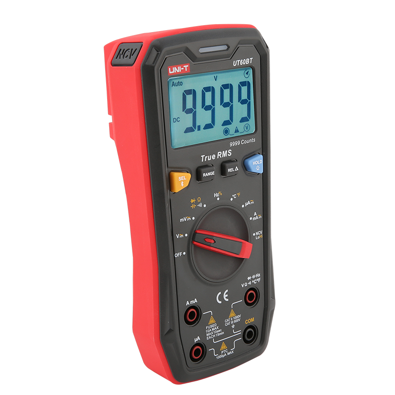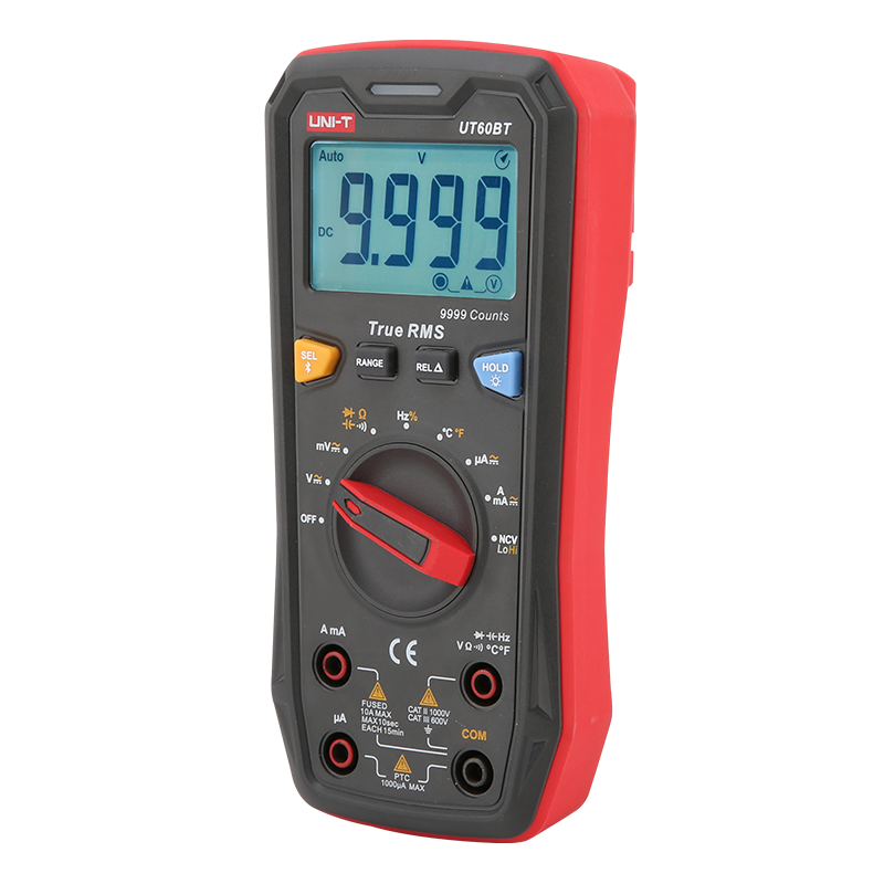 UT60BT是9999位真有效值高分辯率自動量程萬用表,產品采用新一代智能ADC芯片,具有測量過壓、過流報警提示,電路配備完善的6kV防雷電擊和防高壓誤測裝置;符合安規CAT II 1000V/CAT III 600V要求,同時配備藍牙傳輸功能,可通過APP進行操作,是電子電工界優先選擇的數字萬用表。