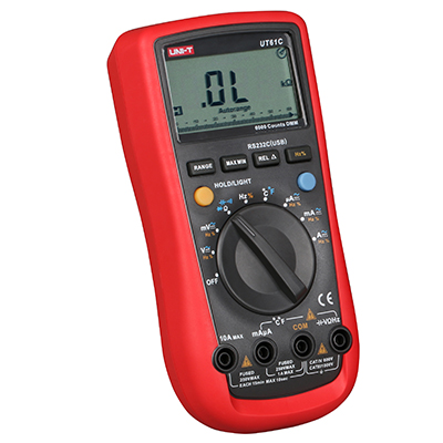 UT61 系列數字萬用表是具備高可靠性、高安全性、自動量程、手持式萬用表等特點。具有超大屏幕數字和高解析度模擬指針的同步顯示功能,全量程過載保護和獨特的外觀設計,使之成為性能更為卓越的新一代實用電工測量儀表。并有RS-232或USB標準數據傳輸接口、數據保持、相對測量、峰值測量、欠壓提示、背光和自動關機功能。