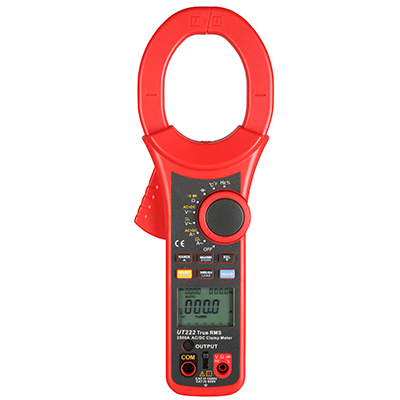 UT222是一款適合測量大電流2500A的數字鉗形萬用表。較大的鉗頭(63MM)開口尺寸可以輕松測量強電流、高電壓場合中常見的粗導線。該系列產品可選功能有真有效值、浪涌電流,低通濾波,數據存儲,電流輸出功能,AC+DC電流/電壓等。并且符合雙重絕緣和CAT IV 600V 的安全等級認證,在沖擊保護上有更大提高。使之成為一款性能優越且安全耐用的多功能鉗形表。適用工業電力系統應用,是電力技術人員維修、維護的理想工具