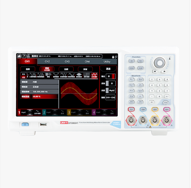 UTG9000T系列 UTG9000T系列函數/任意波形發生器,使用DDS直接數字頻率合成技術,可生成高精度、穩定、純凈、低失真的信號,還能提供高頻率且具有快速上升沿和下降沿的方波。是一款高性能、多功能的四通道函數/任意波形發生器。便捷的觸控操作界面、優越的技術指標及人性化的圖形顯示風格,可幫助您更快的完成工作任務,提高工作效率,是滿足您目前及未來測試需求的多用途設備。