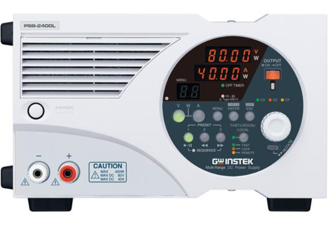 PSB-2000系列是一款高功率密度, 可編程的多量程輸出的直流電源供應器。這個系列共有6個機型,其中包括1臺加載機。其輸出電壓范圍分別為80V及800V,而輸出功率分別為400W及800W。多量程輸出的功能允許在額定功率范圍內提供較高電壓和較大電流的靈活配置。PSB-2000系列可以串聯或是并聯的連接,以適用于更高電源輸出范圍的需求。PSB-2000系列提供三組預設功能鍵可儲存經常使用的電壓, 電流 和功率設定, 用戶可以快速的調用;序列編程功能,可以透過計算機定義由一連串的電壓和電流步進所組成的序列, 經由RS232C, USB接口或和選配的GPIB 接口去控制PSB-2000, 產生序列所定義的輸出電源,,此功能常被運用來建立標準的測試流程,以驗證待測物在操作條件快速變化時對特性的影響。