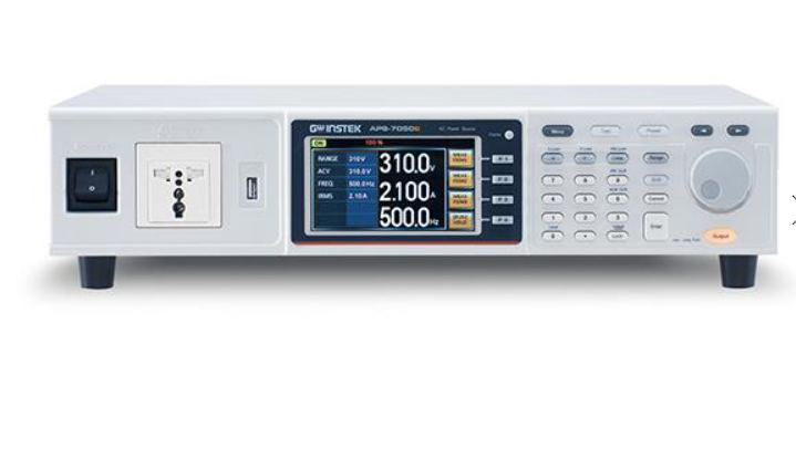 APS-7000E系列線性AC電源高2U,輸出頻率45~500Hz。APS-7050E最大額定輸出500VA、310Vrms、4.2Arms;APS-7100E最大額定輸出1000VA、310Vrms、8.4Arms。APS-7000E系列包含6種測量和測試功能(Vrms, Irms, F, Ipk, W, PF),具有類似AC功率計的用戶界面。該系列通過增強小電流測量分辨率,尤其適合LED生產和備用模式功率損耗測試。為了滿足消費電子中電源電壓波動的測試標準,APS-7000E系列不僅提供了一個穩定的AC電源,其特殊的測試模式還可以處理特殊目的或異常的電壓和頻率。測試模式提供10組存儲器,模擬功率中斷、電壓增強和壓降。該系列可以生成電網功率瞬態波形,使用戶能夠判定在不利條件下的電子產品工作情況。