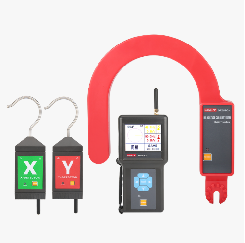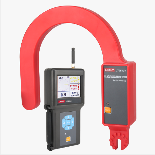 UT269C+無線高壓核相電流表是專為高壓線路及高壓開關柜(中置柜、環網柜等)電流測試及核相而精心設計制造的,儀表突破傳統核相器電壓等級限制問題,可以在極低電壓線路中進行電流測試,完全實現從10V~500kV電壓等級進行測試,無需根據不同電壓等級購置多套儀器,節省成本,減少攜帶,省時快捷。儀表除了電流測試,還具有核相、相位測試、頻率測試等功能,還有驗電及線路電壓顯示功能。當線路電壓超過110kV,必須使用非接觸測試,測試時將探測器的金屬探鉤逐漸靠近導線,當感應到電場信號即可完成電流測試與核相,無需直接接觸高壓導線,安全快速。其專用鉤式電流檢測儀通過絕緣桿能方便接近被測導線,可以直接掛在線路上進行測量電流,省時省力快捷。
