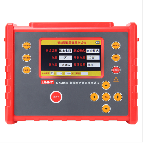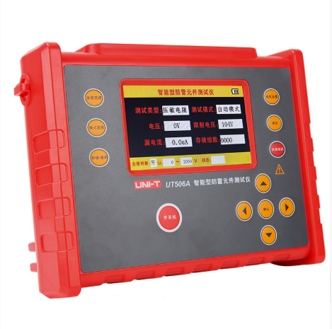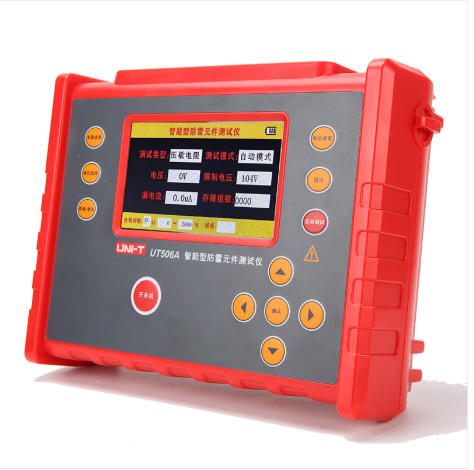 UT506A智能型防雷元件測試儀,用于避雷器、防雷器、浪涌保護器、壓敏電阻、金屬陶瓷放電管、直空避雷管等性能測試的專用儀表。采用充電功能離線使用克服了傳統(tǒng)產(chǎn)品要插電使用不方便現(xiàn)場操作的缺點。電壓輸出2000V,應(yīng)用領(lǐng)域更為廣泛,使用高壓短路保護,自動放電功能,儀表可靠安全耐用。同時采用豪華大彩屏顯示,具備數(shù)據(jù)存儲、數(shù)據(jù)查閱、自動關(guān)機、USB數(shù)據(jù)傳輸?shù)裙δ堋A砍虖V、分辨率高、操作簡便、易于攜帶,是電力領(lǐng)域必不可少的一款測量儀表。