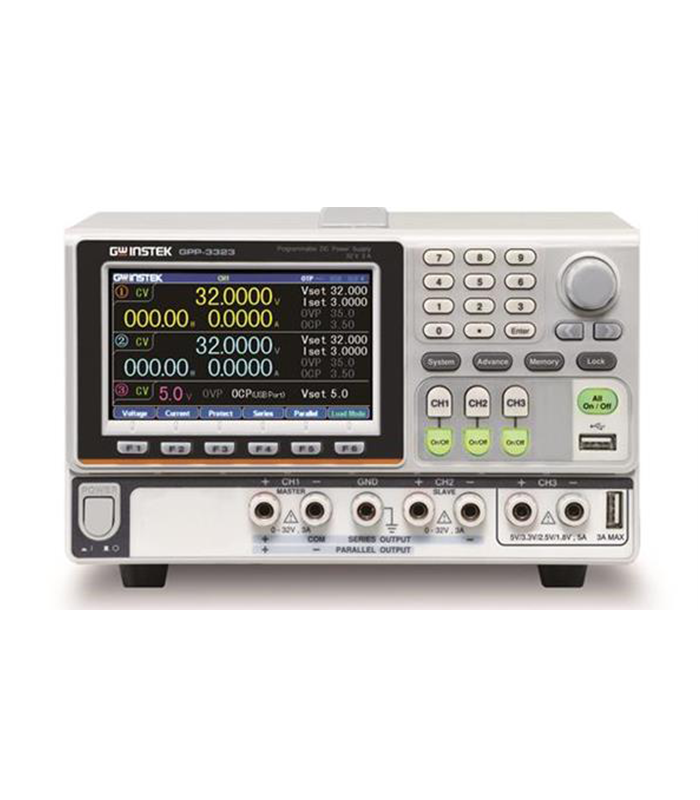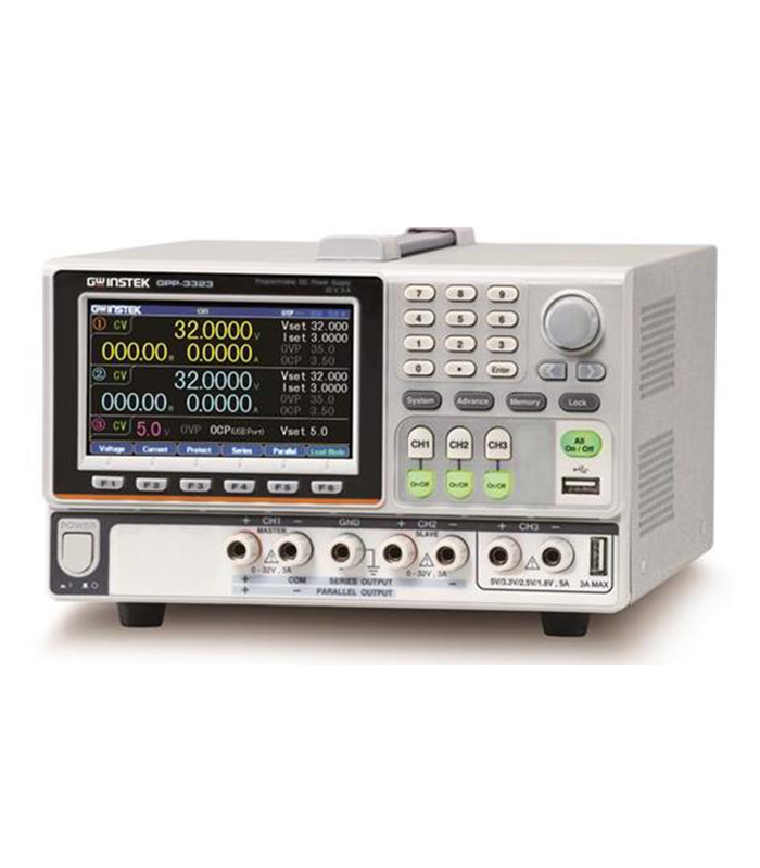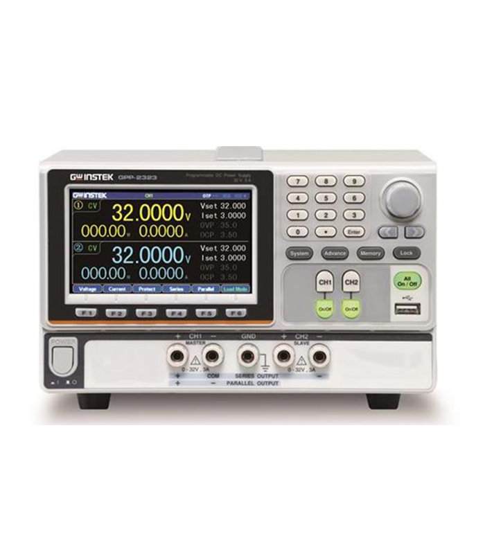 GPP- 系列多通道可編程直流電源,輸出功率高達385W,共包含六款機型:分別是單通道輸出的GPP-1326, 雙通道輸出的GPP-2323, 三通道輸出的GPP-3323、GPP-3060、GPP-6030、GPP-3650和四通道輸出的GPP-4323。此系列不僅提供各通道獨立輸出開關,并提供1mV/0.1mA設定分辨率、低漣波噪聲特性 ≦350uVrms/≦2mArms及 ≦50uS輸出瞬態回復能力。