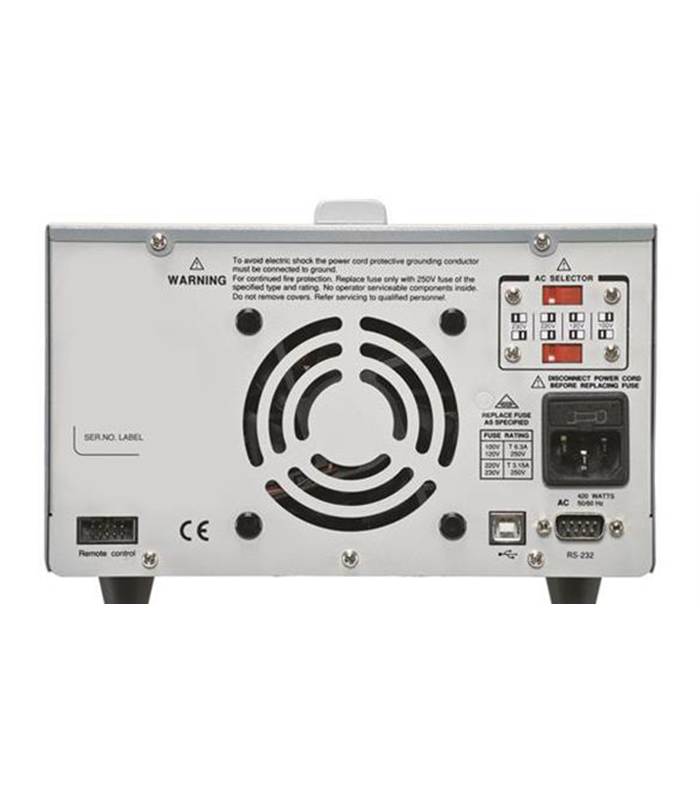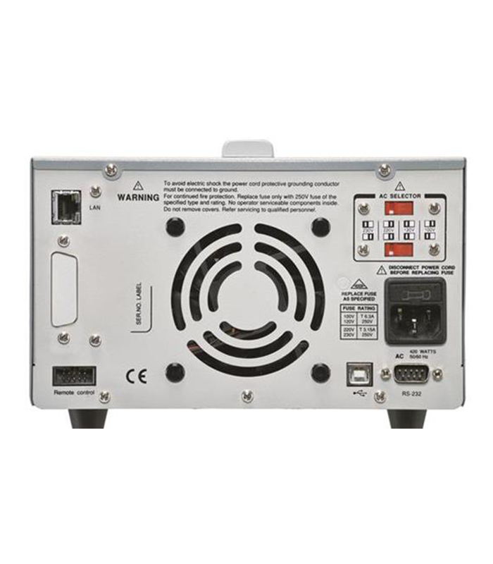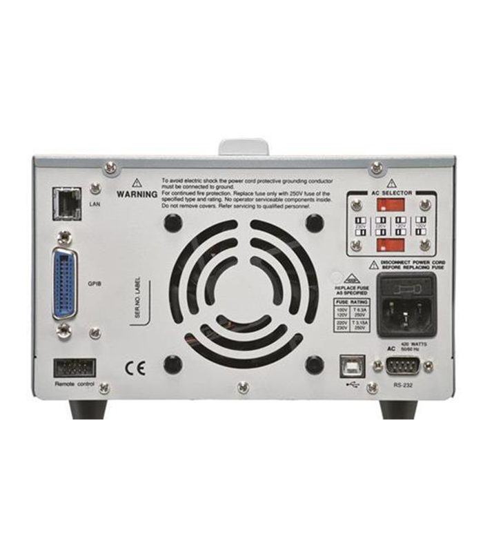 此外,Trigger In/ Trigger Out功能可以同步外部裝置;GPP-3323/3060/6030通道3(Ch3)增加3A USB(Type A)輸出端子,可以做USB充電測試;智能溫控風扇可以依據功率器件的溫度,調整轉速,降低不必要的噪音。輸出值設定及Sequence/Delay/Recorder功能分別提供10組存儲(memory)供使用,且可利用U盤載入/儲存。GPP系列除了標配有RS-232C及USB遠程接口外,還有可選配的LAN或LAN+GPIB接口,方便于不同的用戶需求。指令上符合SCPI的要求,且可兼容GPD-x303S系列直流電源的指令。